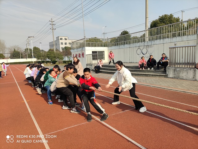 拔河场地更是紧张又刺激的进行着角逐。同学们使出浑身力气,面色潮红,心中只有一个共同的目标,那就是“胜利”。当然,老师们也没有闲着,她们和学生一起,呼喊着口号,和学生们一起用力,共同进退。