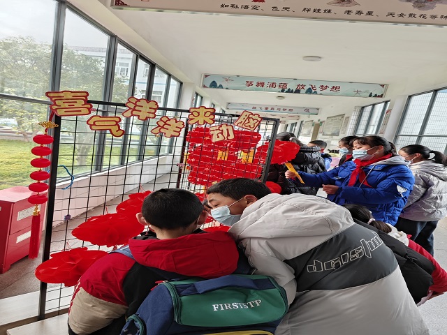 “平平安安”、“大吉大利”、“‘兔’个吉祥”、“一鼓作气”……小小的仪式,满满的祝福,希望同学们在新的学期好运连连。
